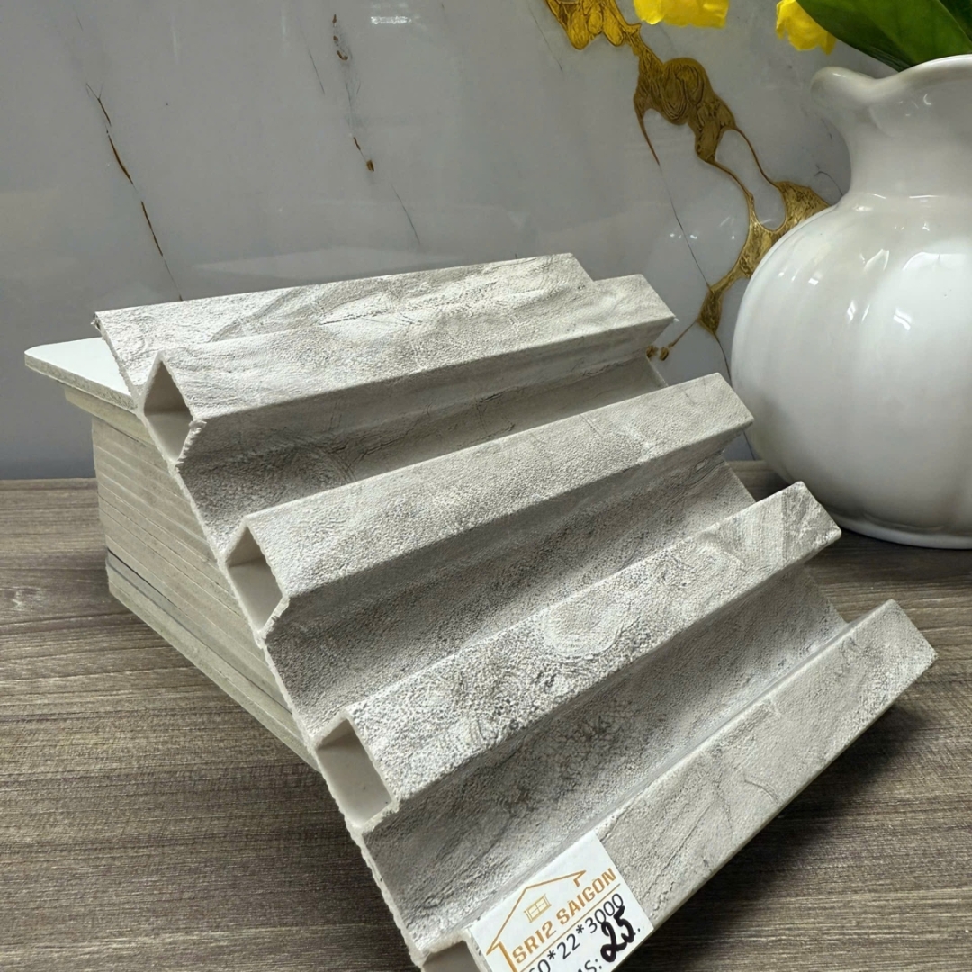 Tấm ốp tường lam 4 sóng của SR12 SÀIGÒN là tấm nhựa giả gỗ thiết kế kiểu 4 sóng cao, được mô phỏng theo vân gỗ tự nhiên dùng để ốp tường, ốp trần, ốp lamri… Sản phẩm có tính thẩm mỹ cao có khả năng cách nhiệt, cách âm, chống mối mọt, không cong vênh. 0936 876 921